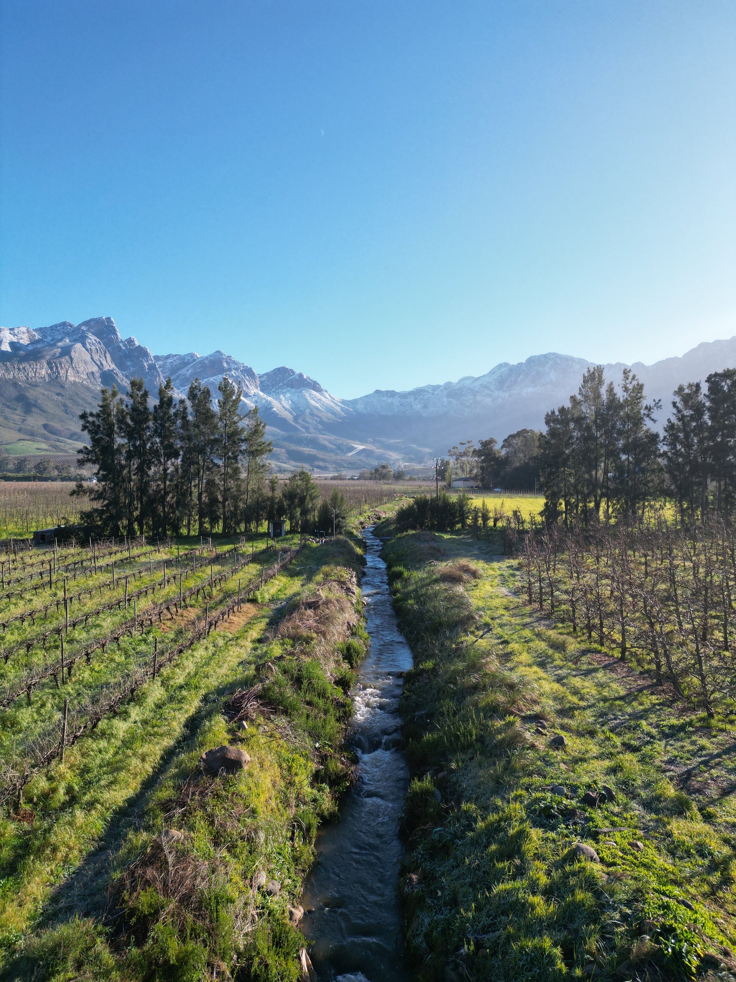 Winter pruning of orchards continue including vineyard pruning. Basic upkeep around the farm. Inspection and if necessary restoration of farm houses, sheds, buildings, water pipes, and farm equipment are usually done around this time. Harvest planning and preparation is done to ensure sufficient equipment is in place and that workers are up to date on skills and work ethics that need to be followed. Winter pruned shoots are either mulched on the bankies or used to make biochar.